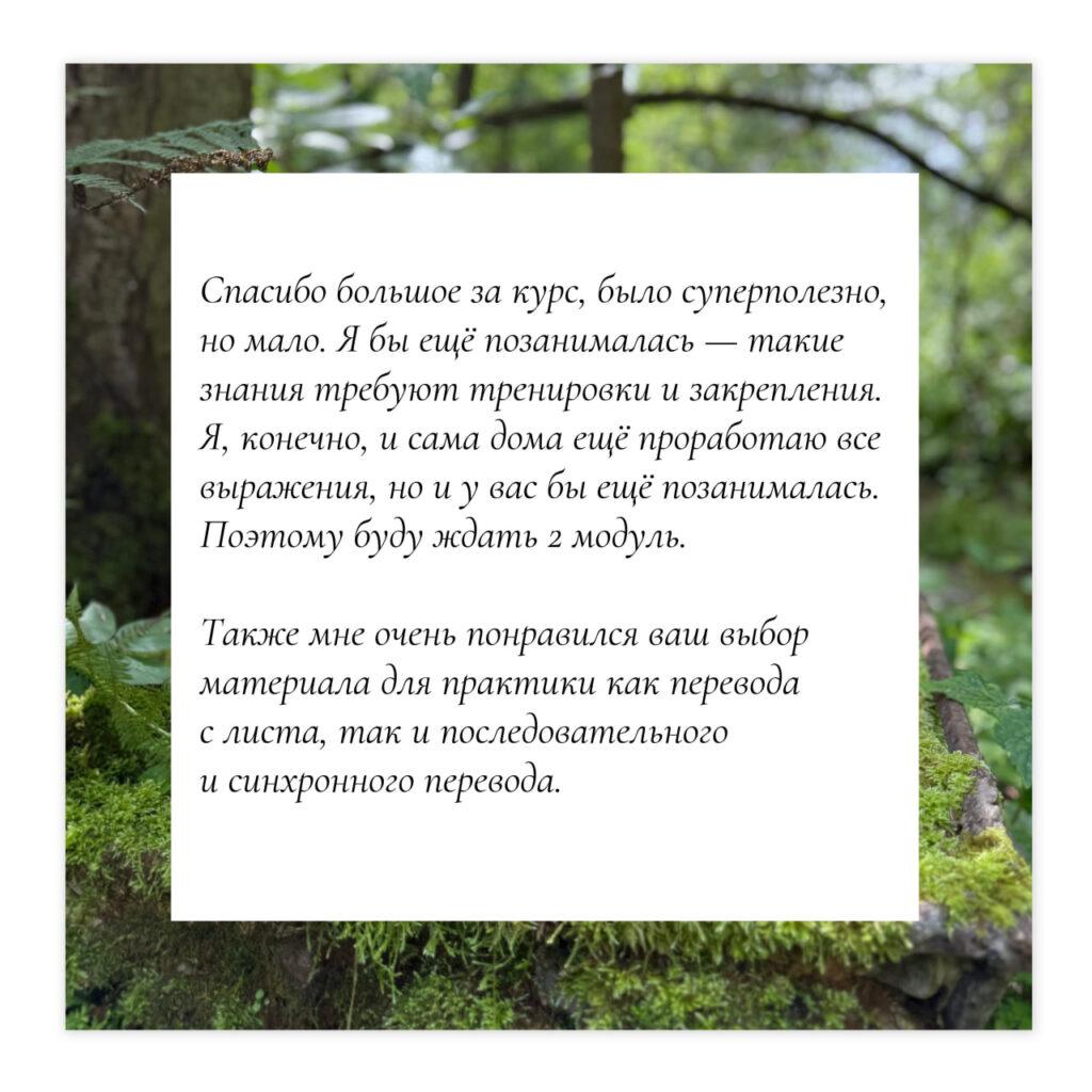Обратная связь: есть. Необходимо записать себя на диктофон и отправить в личные сообщения для получения фидбэка.